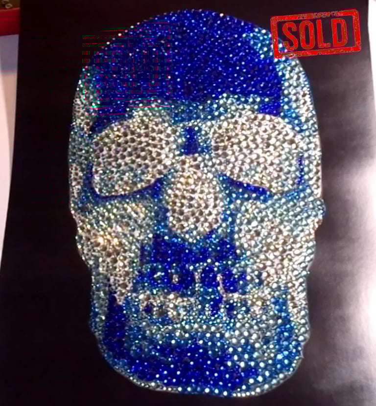 SOLD A3 Negative Rhinestone Skull (Blue) art & T shirts