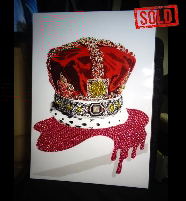 Canary diamond centre, diamond square, full red rhinestone blood. A3 prints on 320gsm card on 5mm foam board. GL signed and authenticity stickers on reverse.