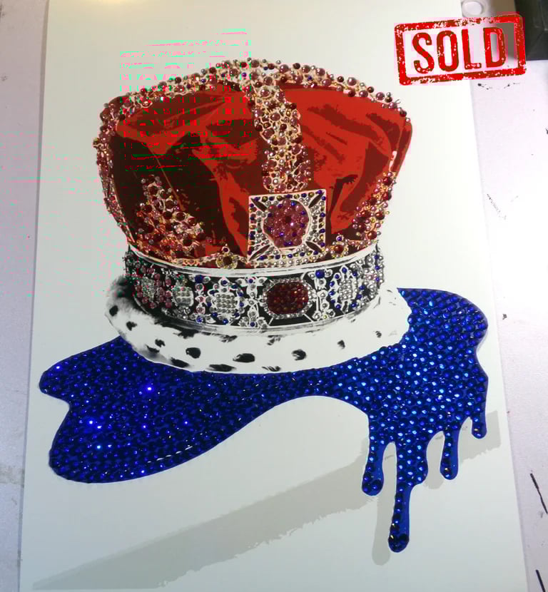 Red and crimson centre piece with full blue rhinestone blood. Approximately 900 hand glued rhinestones. A3 prints on 320gsm card, 5mm foam board. GL signed and authenticity stickers on reverse.