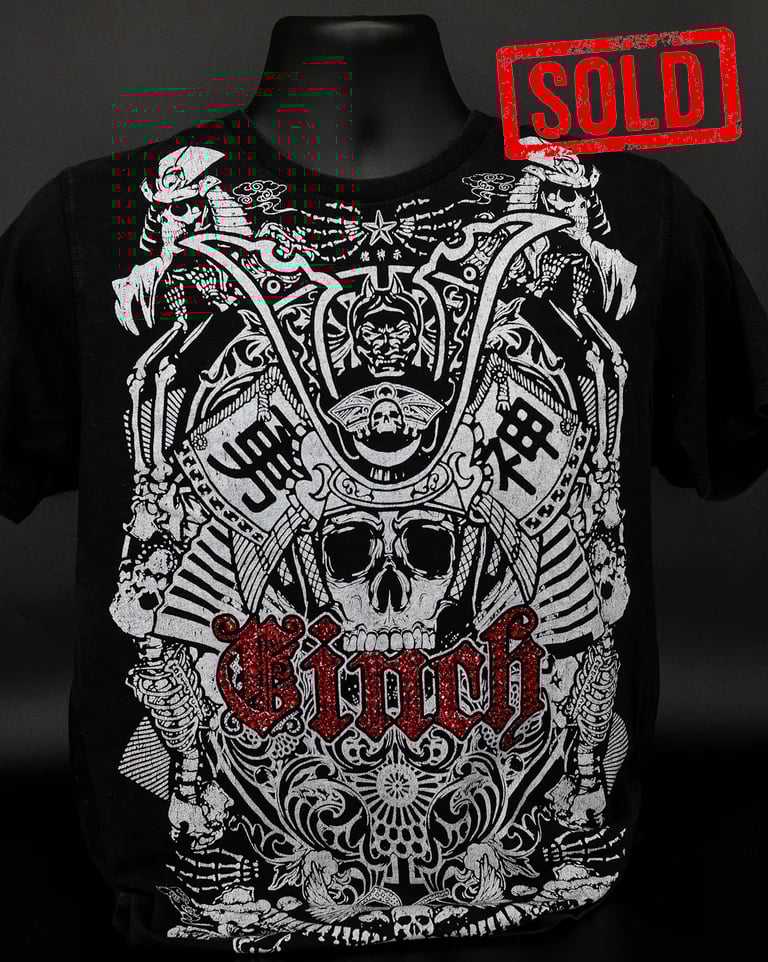 Vintage hand customised Cinch ‘86 black T shirt with red rhinestones, size Large