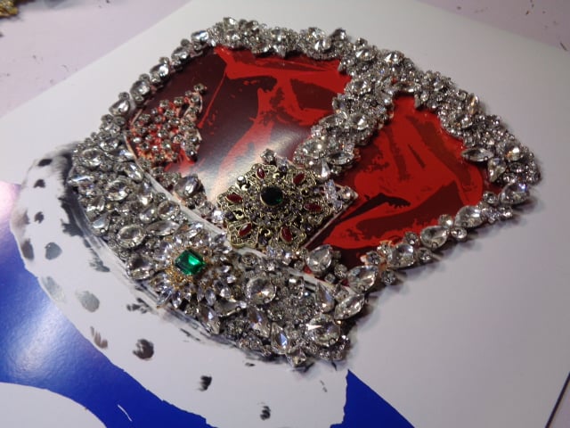 These are high definition A3 prints of one of my fully jewelled crowns. These are 320 gsm heavy card with a different eye popping central jewel showpiece on each piece and a miriad of supporting actual stones, all meticulously hand glued into place on the photographed original. Ingenious or crazy, you decide.