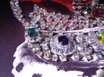 The 'Fruitopia Crown' because this piece is a riot of colour and big feature stones all the colours of the rainbow, with hundreds of supporting brilliant white dress diamonds. I use the highest quality stones and settings I can find, from sources far and wide, often beautifully hand crafted and set in sterling silver mounts which I then cut up and rework.