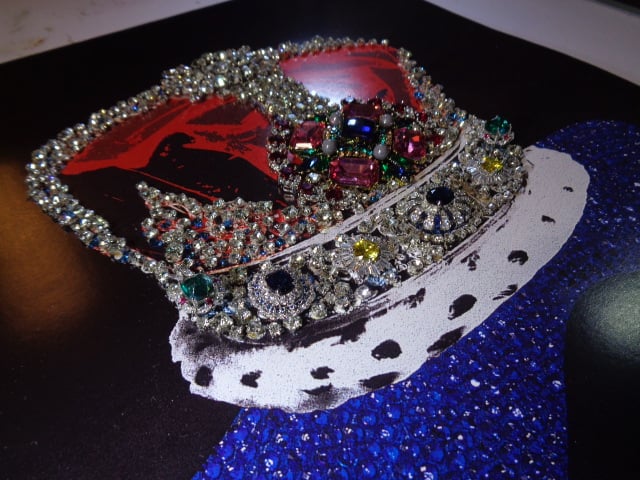 These are high definition A3 prints of one of my fully jewelled crowns. These are 320 gsm heavy card with a different eye popping central jewel showpiece on each piece and a miriad of supporting actual stones, all meticulously hand glued into place on the photographed original. Ingenious or crazy, you decide.
