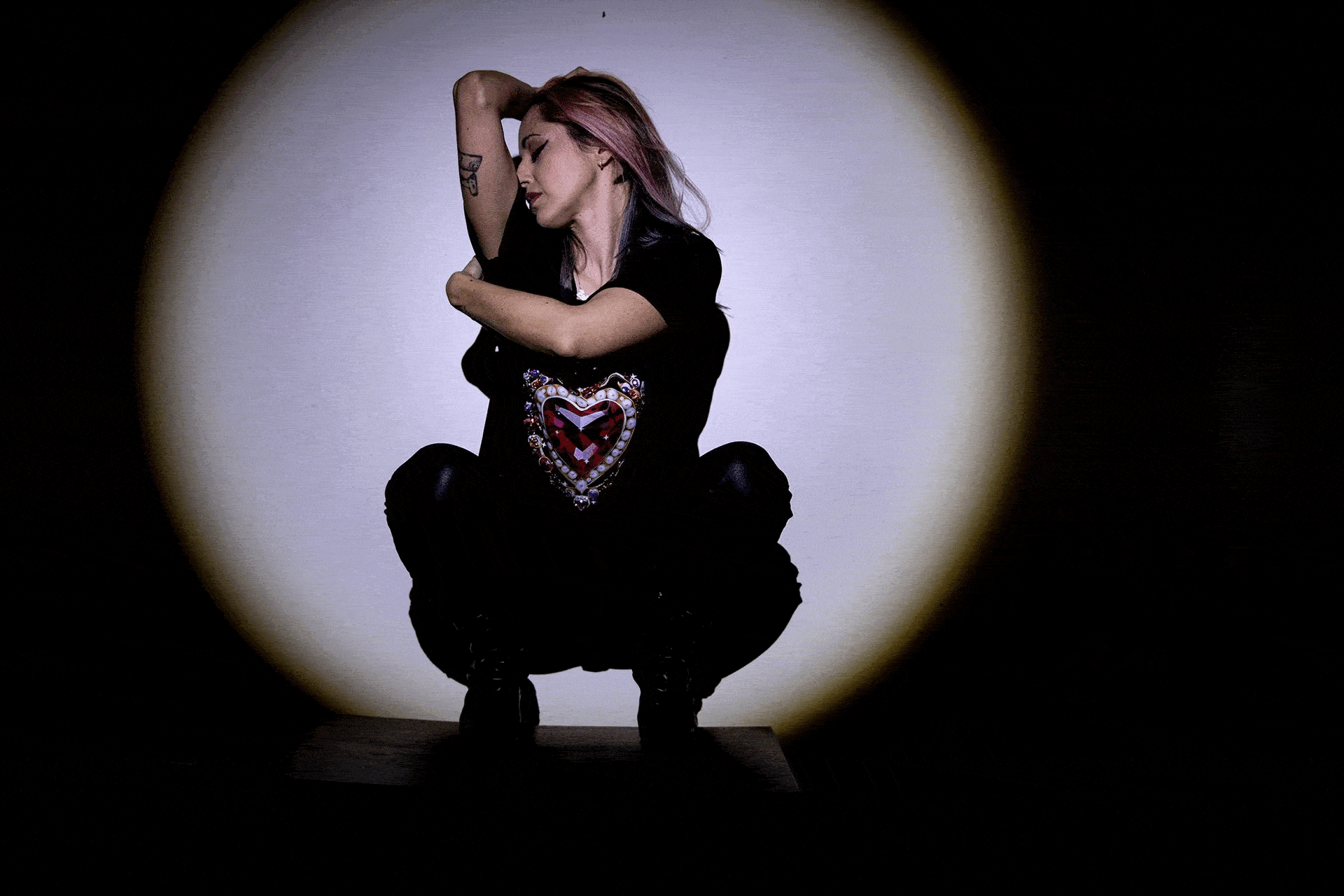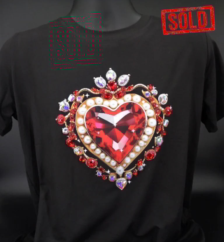 SOLD Giantgem - PINK Heavily jewelled Ruby heart T shirt